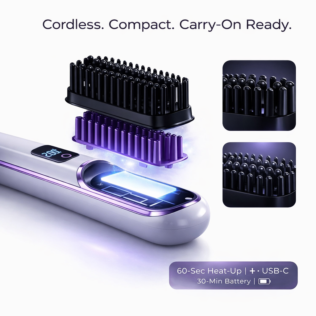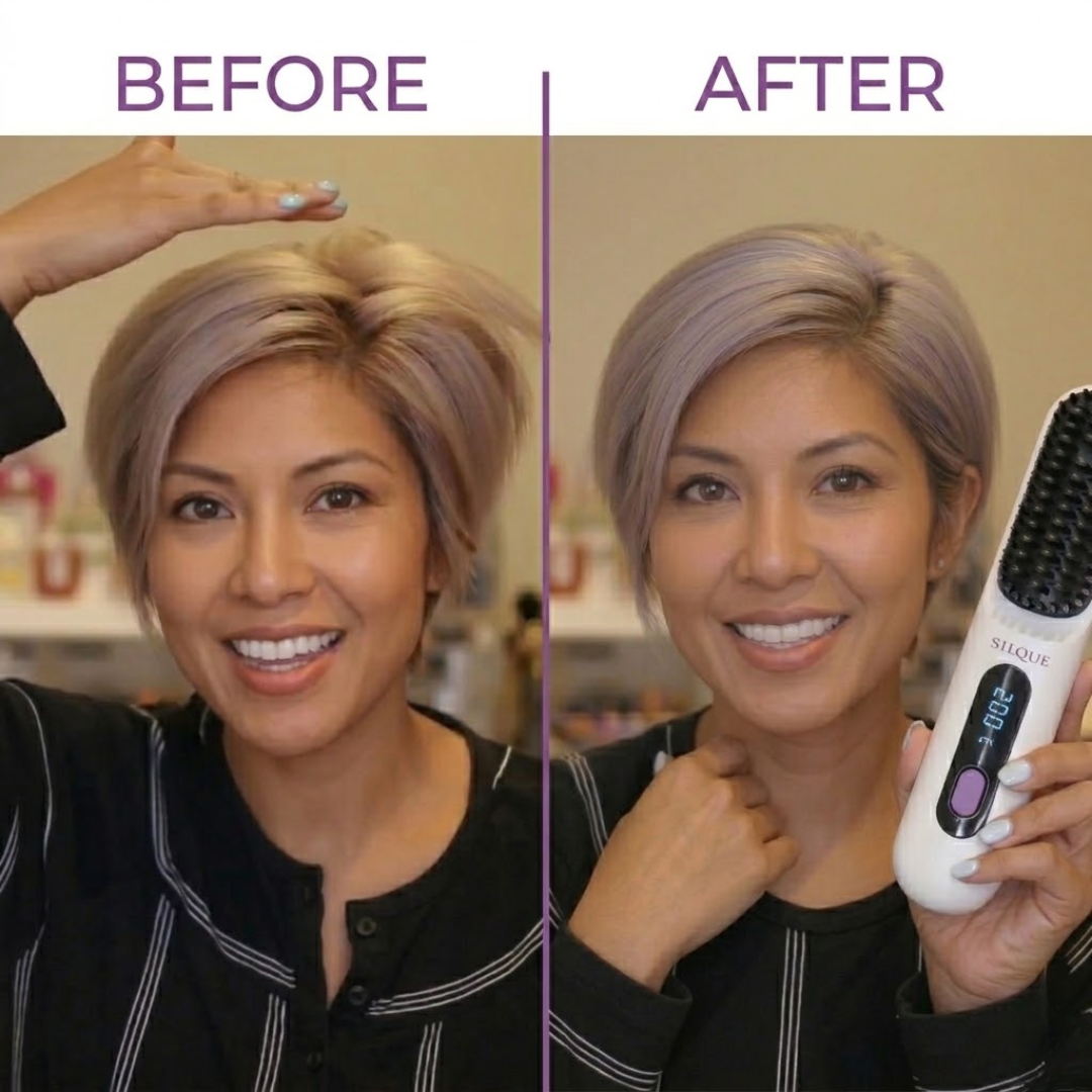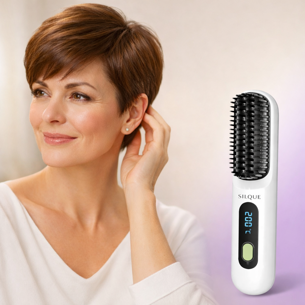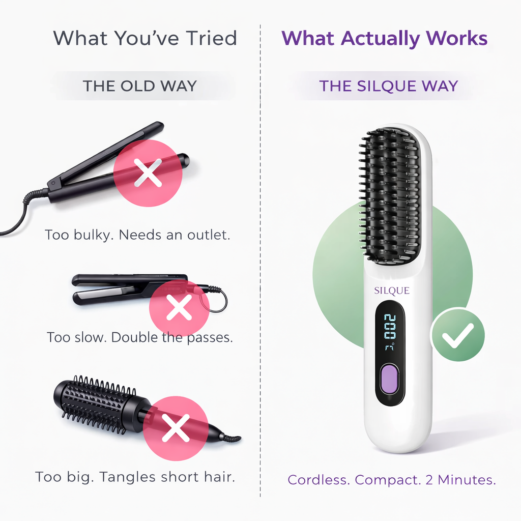 The Silque™ Beauty Brush was engineered from the ground up for short hair geometry. Not adapted from a long-hair tool. Not a mini version of something bigger. A purpose-built 2.8” precision brush that reaches the crown, the nape, behind the ears, and every angle your current tools miss — in 2 minutes flat.